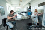 Daisy Stone (blonde with small natural tits, red nails) and Dharma Jones (brunette MILF) star in freeuse threesome. Starts with cum-faced sluts holding cock, escalating to Daisy spread-eagled getting pussy pounded while Dharma watches/reads. Man tattoos Daisy doggy style on bed, Dharma eats blonde's ass, shared tongue-lashing on throbbing dick. Living room tease: Daisy in black lace thong bra blows guy, rides him in garter; Dharma in jeans/turtleneck. Kitchen cunnilingus—Dharma kneels licking Daisy's wet slit against fridge, tits groped. Hardcore fucking from behind, facials, phat asses bouncing in ripped jeans vibe.